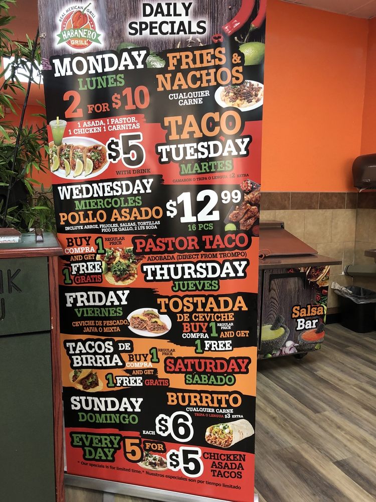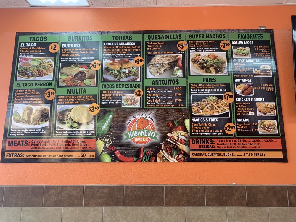 Welcome to Habanero Grill, a delightful taco haven located at 2409 N Rainbow Blvd, Las Vegas. Specializing in authentic Mexican flavors, this eatery offers a menu bursting with vibrant dishes that will make your taste buds dance. From their signature Carne Asada Tacos to mouthwatering Shrimp Tacos, each bite promises freshness and authenticity. Notable combos like the 2 Taco Perron and Asada Fries cater to every craving, served with rich sides like whole beans and salsa fresca.
